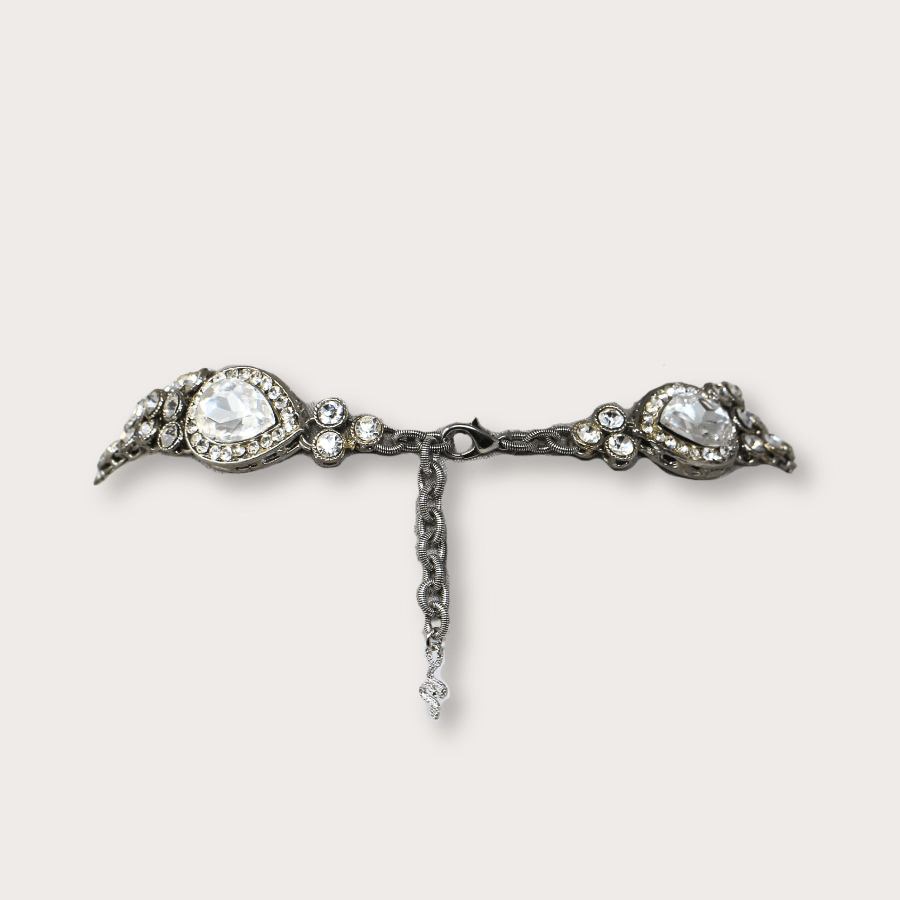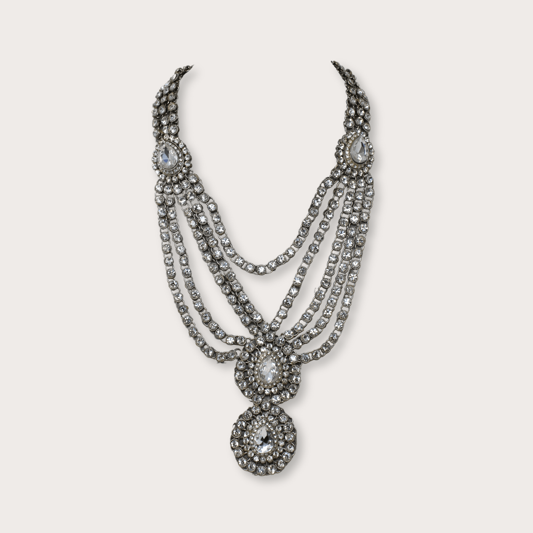 From our HUNTS selection: a handmade brass necklace with crystals that gives the piece a vintage look.